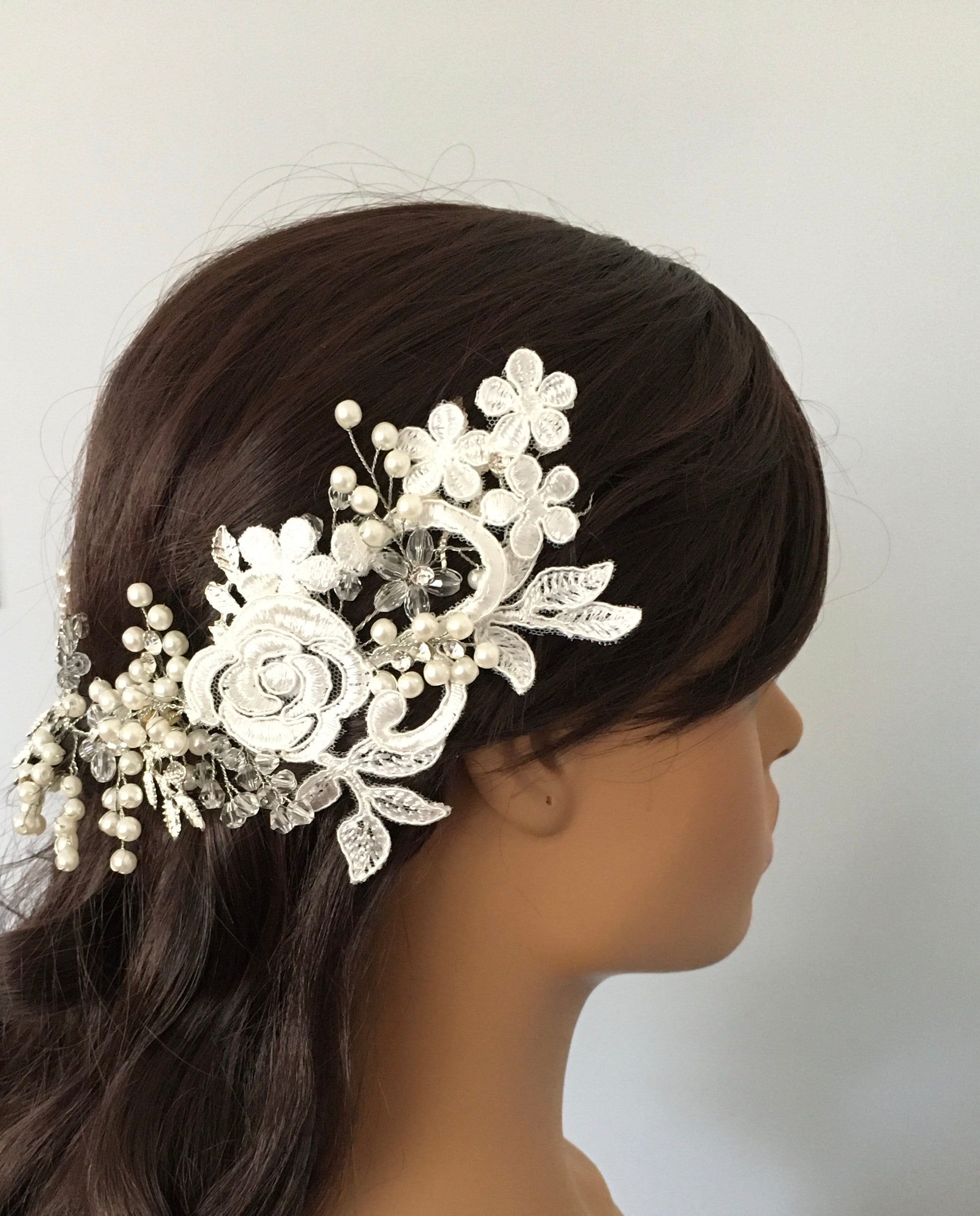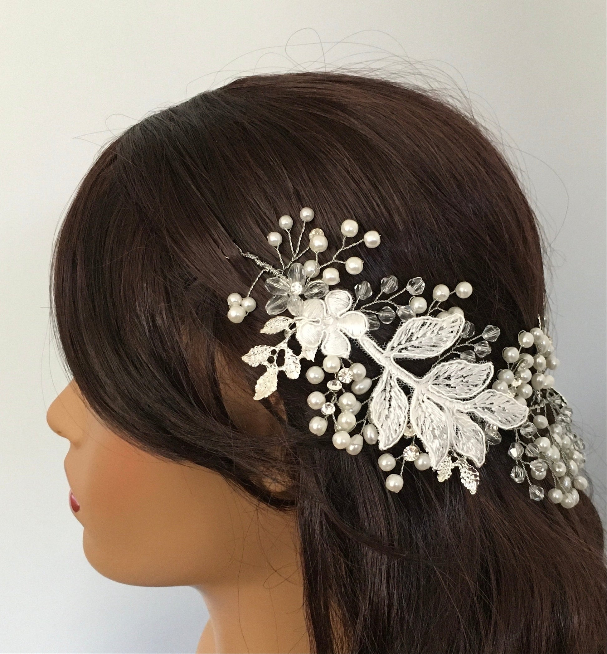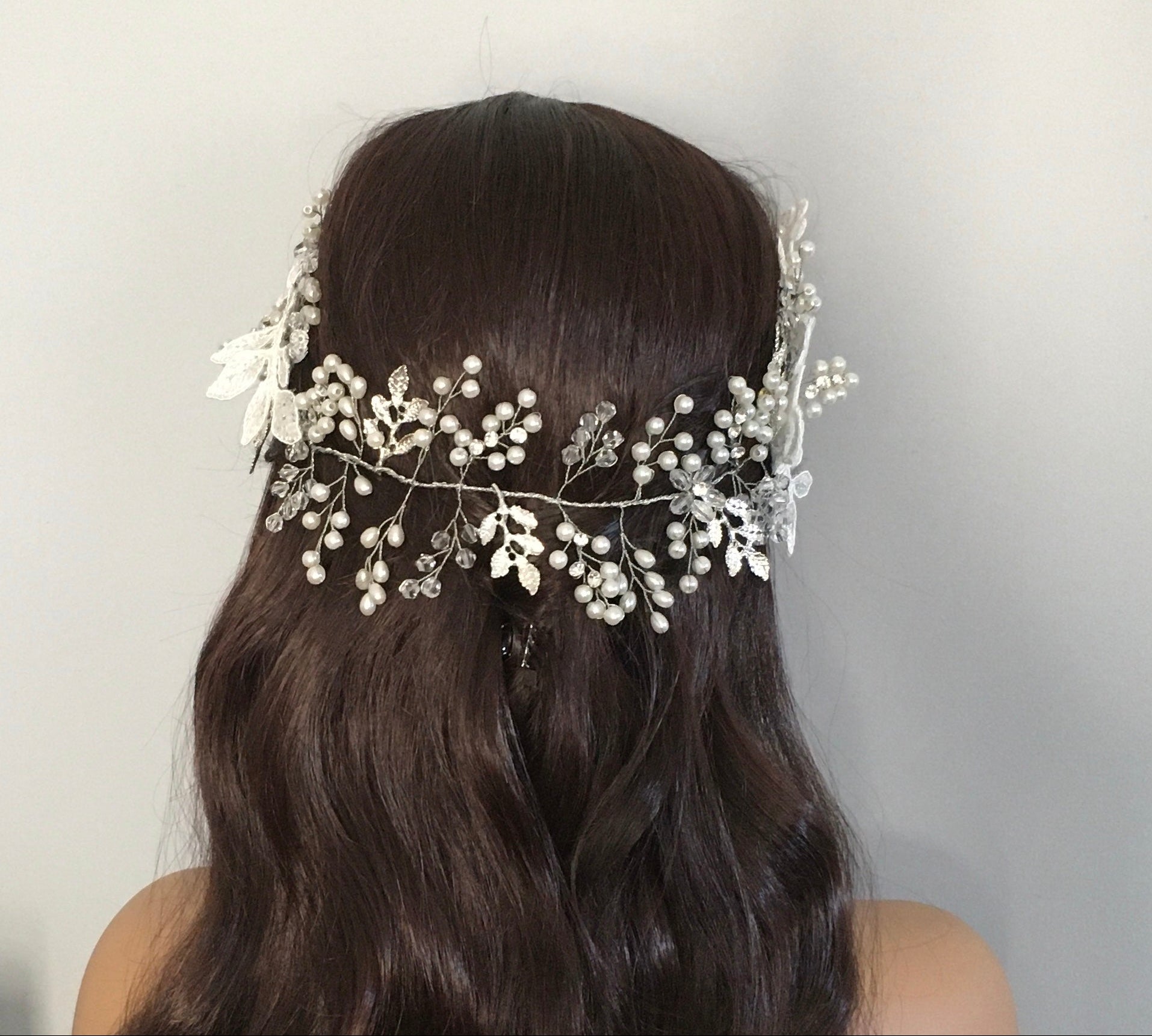 Cali Bloom Floral Head Vine features lace flowers, soft pearls, and crystal accents arranged on a flexible wire design. Lightweight and versatile, for effortless styling and a comfortable fit.