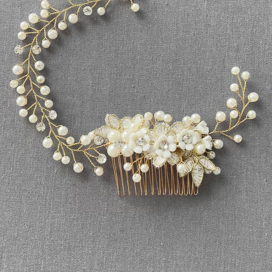 Colette Golden Pearl Hair Vine Comb