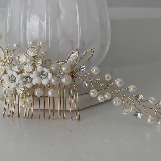 Colette Golden Floral Bridal Hair Vine Comb
