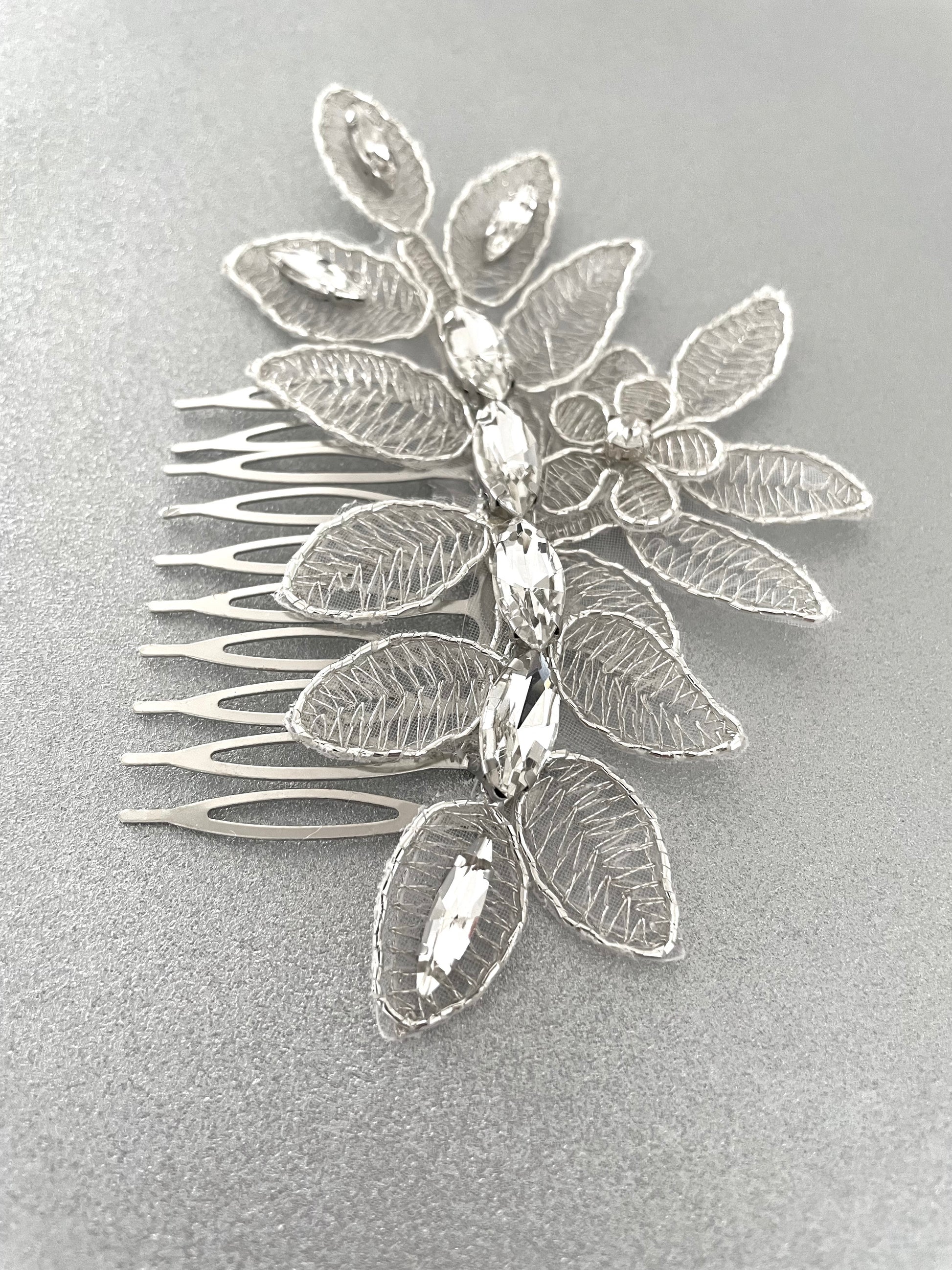 Crystal Rue Silver Leaf Bridal Hair Comb